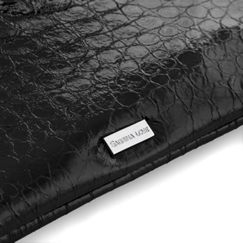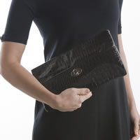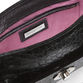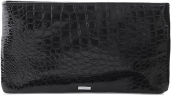 A nod to the glamour of yesteryear, with the edge of today. In black crocodile embossed patent leather this clutch is large enough for day and sophisticated for night. Made with the highest quality Italian lamb, and stunning imported Italian hardware.